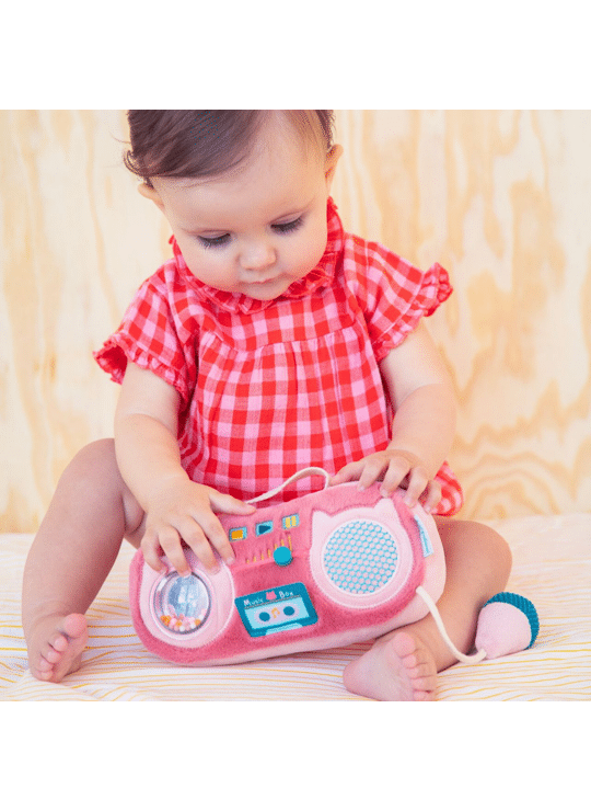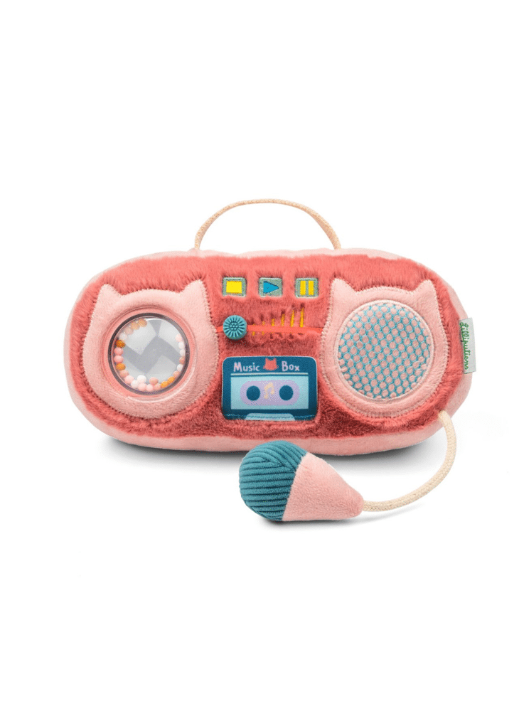 Een leuk stoffen radiootje om de zintuigen van je baby te prikkelen! Als je het vastpakt, maakt het vrolijke geluidjes die de aandacht trekken en het gehoor stimuleren. Zacht en uniek van vorm, nodigt dit radiootje je baby uit om te ontdekken, zijn zintuigen te ontwikkelen en zijn fantasie de vrije loop te laten. De geluidsmodule heeft een aan/uit-knop en is verwijderbaar, zodat hij gemakkelijk in de wasmachine gewassen kan worden.