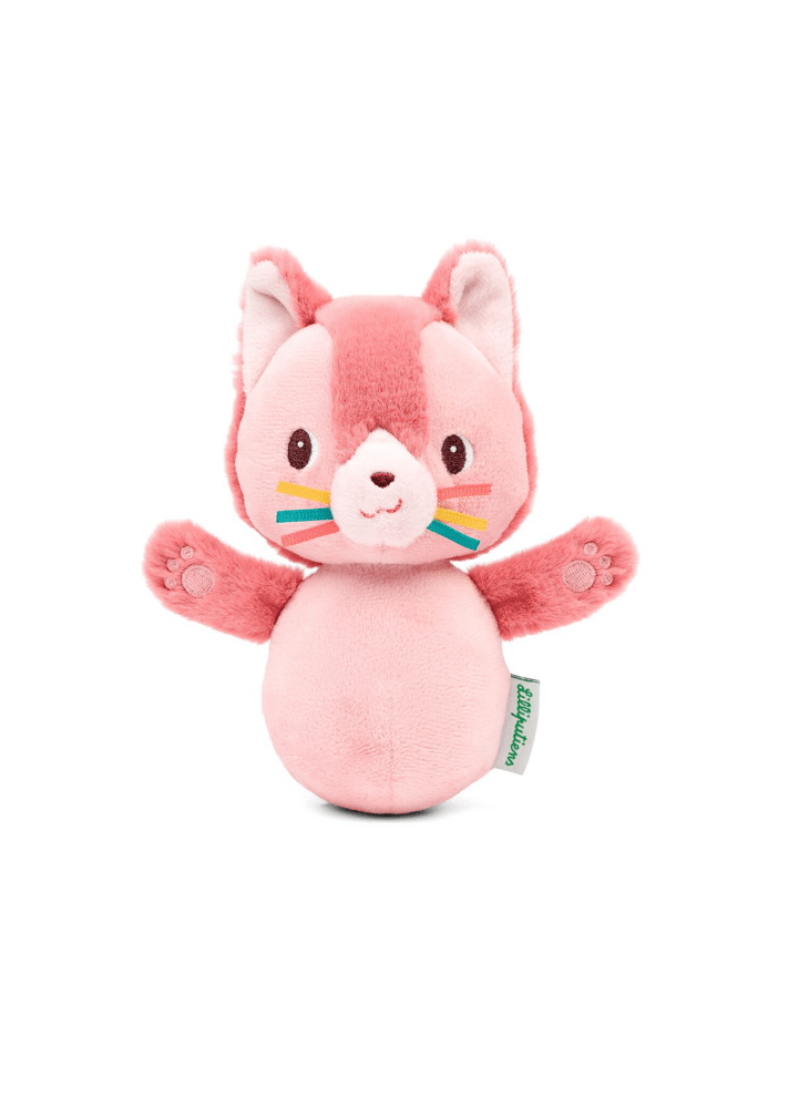 Jeanne wiebelt heen en weer en maakt een vrolijk geluidje. Ontdek Jeanne, de mollige kat, een zacht en kleurrijk ontwikkelingsspeeltje dat baby's vanaf 6 maanden oud vermaakt.